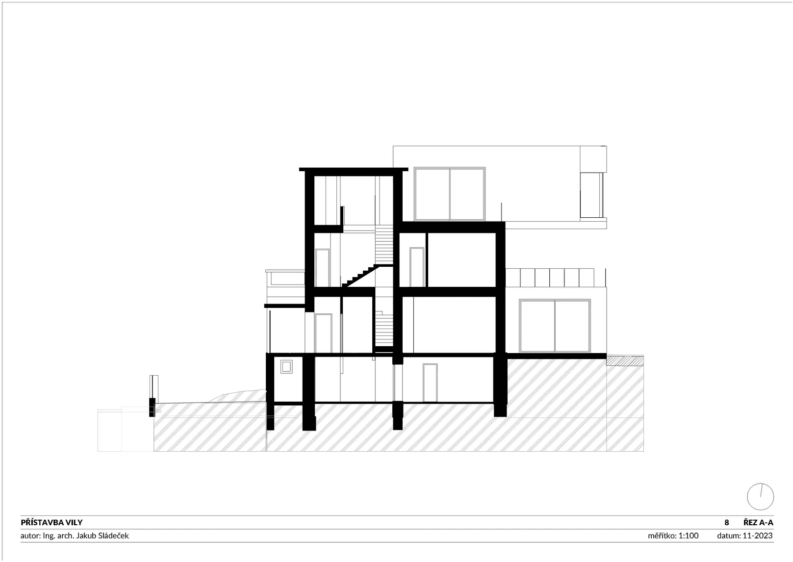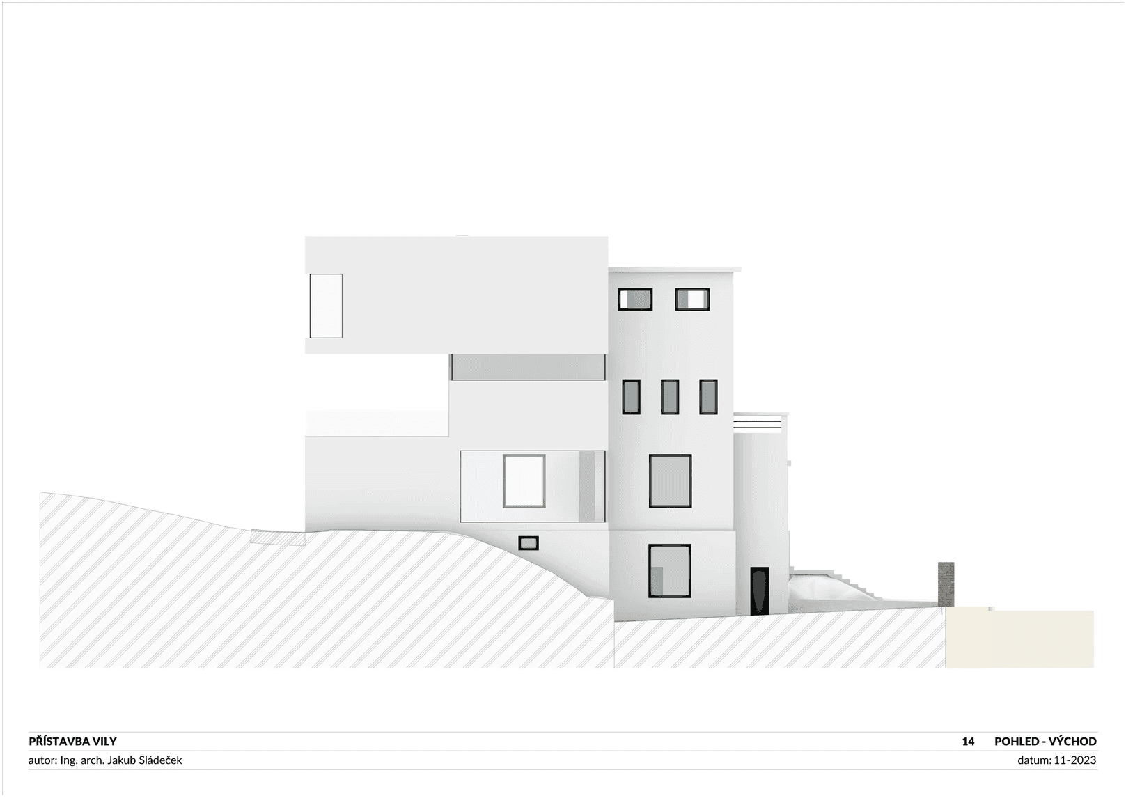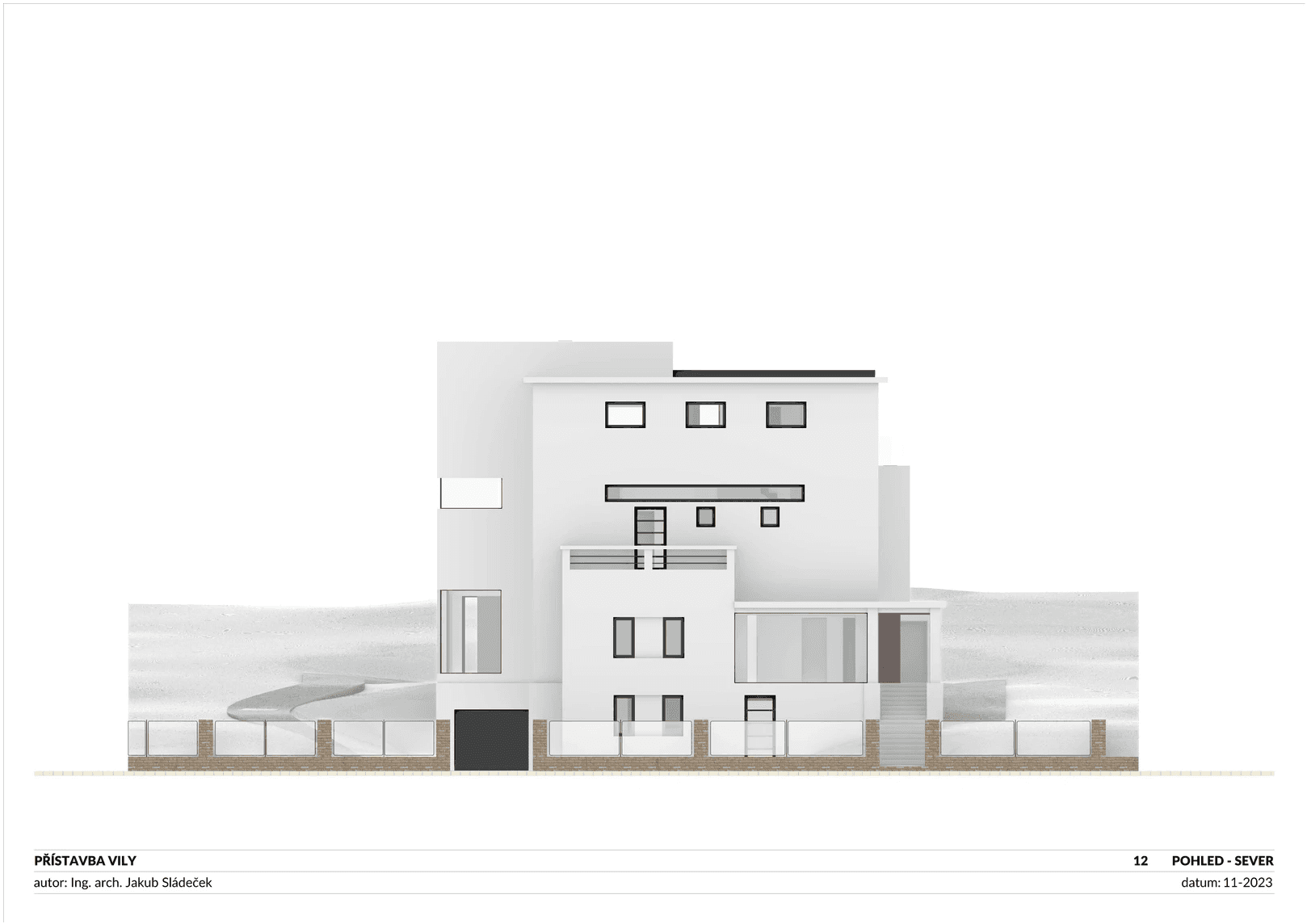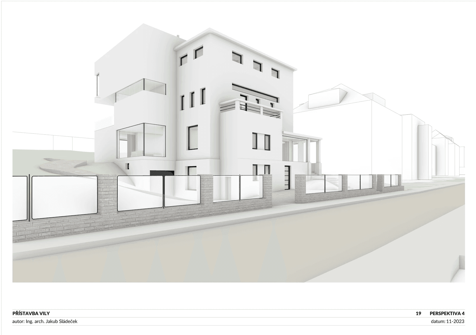 Návrh citlivě přizpůsobuje objekt městskému měřítku, obnovuje fasádu a čistí dispozice. Nový krov s vikýři umožňuje variabilní využití podkroví, zatímco přístavba s depozitářem doplňuje provozní zázemí.