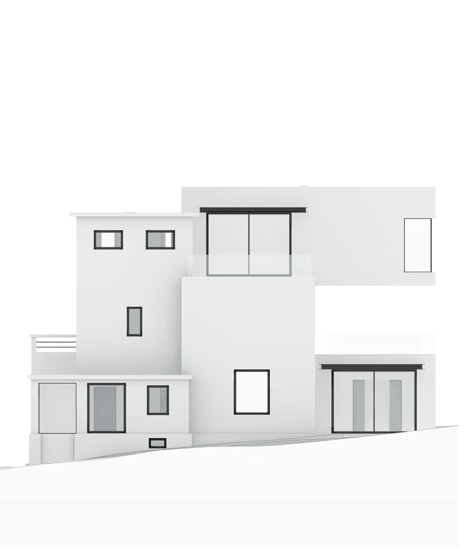 Využívajúc typológiu chodišťových sekcií a členeniena polpodlažia, hmota domu sa zvyšuje smerom