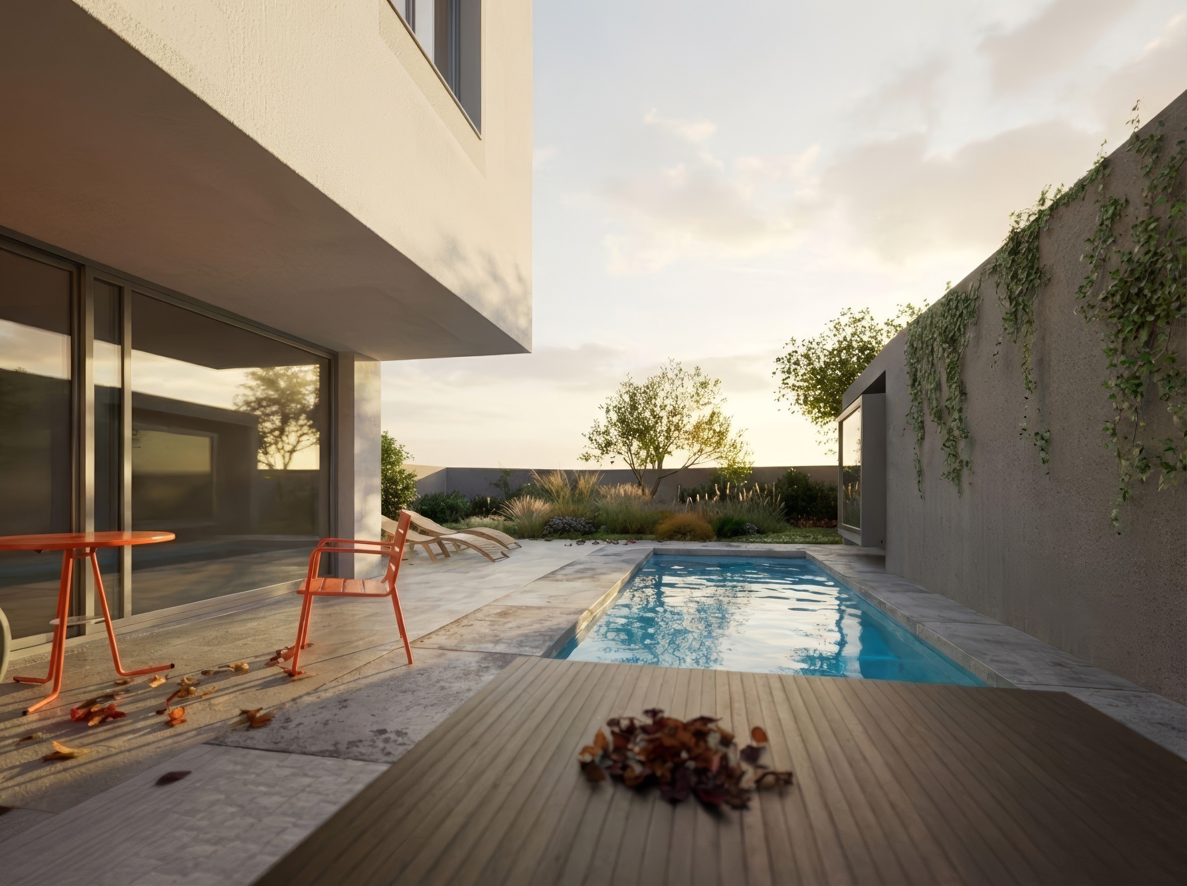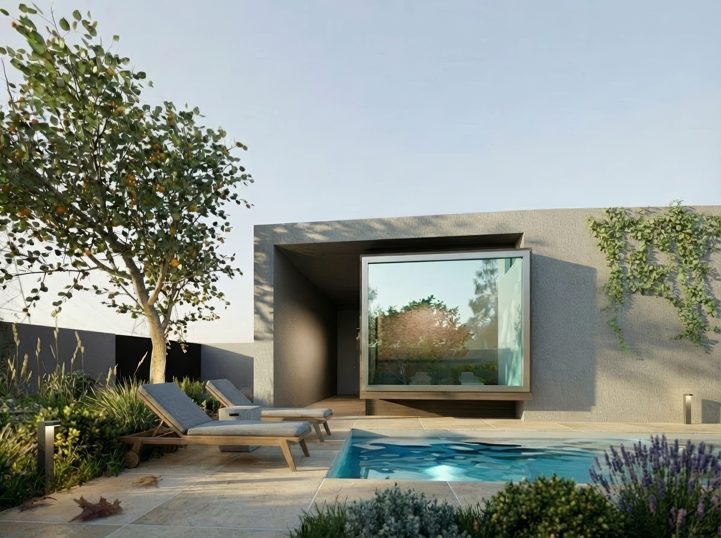 s přírodním prostředím, využívající velké prosklené plochy a otevřené dispozice. Důraz byl kladen na kvalitní materiály a maximální využití přirozeného světla, čímž vznikl prostor, který nabízí komfort